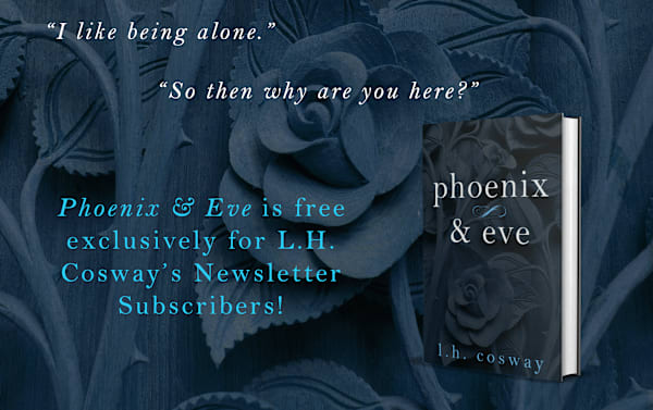 My standalone romance novel, Phoenix & Eve, is available for free exclusively for my newsletter subscribers. If you would like to receive a copy, go to the following link and sign up for my newsletter: https://lhcoswayauthor.com/mailing-list